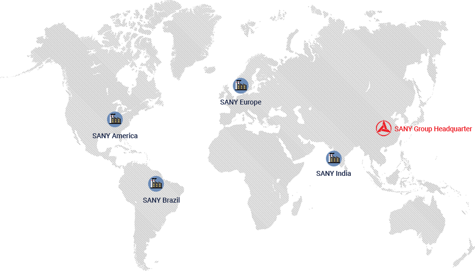 Grupa SANY posiada 13 kompleksów produkcyjnych zlokalizowanych w Chinach, USA, Niemczech, Indiach, Brazylii i Indonezji. Nasza sieć sprzedaży i serwisu obejmuje ponad 150 krajów i regionów. W skład Grupy SANY wchodzą trzy spółki notowane na giełdzie: SANY Heavy Industry i SANY Renewable Energy, notowane na Giełdzie Papierów Wartościowych w Szanghaju, SANY International Development Ltd., notowane na Giełdzie Papierów Wartościowych w Hongkongu.