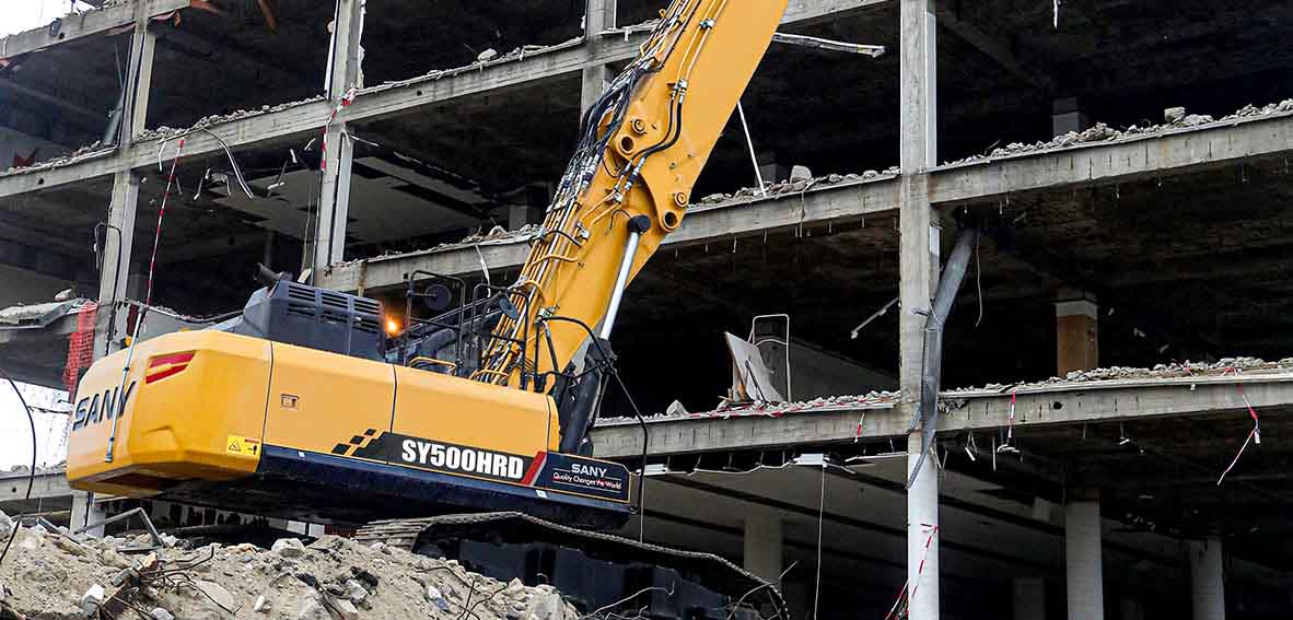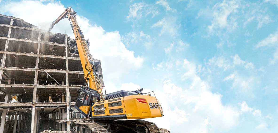 Wysoki i stabilny – dzięki wysięgnikowi o długości 28 m SY500HRD pozwala na precyzyjne prace wyburzeniowe, nawet w przypadku wysokich budynków i konstrukcji. Większa stabilność, zwiększona przenoszona siła – SY500HRD ma szerokie, hydraulicznie teleskopowe podwozie z wyjątkowo stabilną i solidną ramą. Uzyskana w ten sposób duża powierzchnia podstawy zapewnia kierowcy bezpieczną i precyzyjną pracę nawet na nierównym podłożu. Zapewnia to również SY500HRD najlepszą stabilność, co oznacza, że ​​moc jest wykorzystywana w najlepszy możliwy sposób. Idealny do zapewnienia maksymalnego bezpieczeństwa na budowie dzięki stabilności. Inteligentny sposób na zapewnienie mniejszego rozstawu kół w transporcie lub w wąskich obszarach.