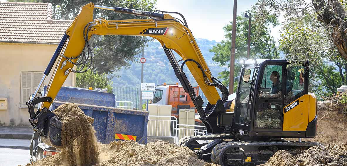 Bezpieczna praca na najmniejszej przestrzeni – kompaktowe wymiary maszyny z krótkim tyłem pozwalają na bezpieczną pracę i manewrowanie nawet w bardzo ograniczonych przestrzeniach. Minimalny promień obrotu, maksymalna stabilność – czy to podczas załadunku na dużą skalę, czy pracy w ograniczonej przestrzeni – koparka SANY SY80U z krótkim tyłem może optymalnie wykonywać swoją pracę w każdym miejscu. Dzięki minimalnemu promieniowi obrotu ogona oraz kompaktowej, zaokrąglonej konstrukcji z krótkim ogonem operator może całkowicie skoncentrować się na swoim obszarze pracy, bez konieczności zwracania uwagi na ogon. Dzięki temu maszyna może bezpiecznie pracować na najmniejszej przestrzeni lub w bezpośrednim sąsiedztwie przeszkód. Jest to idealne rozwiązanie do zadań w obszarach śródmiejskich lub w architekturze krajobrazu. Bezpieczeństwo nie zostało przy tym naruszone – nawet przy dużym zasięgu kopania i dużej wysokości zrzutu koparka SY80U pozostaje niezawodnie wytrzymała.